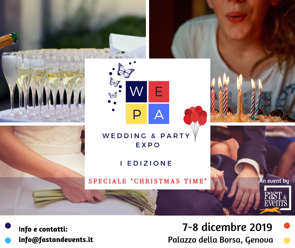 E’ online il sito dedicato all’evento WEPA Expo, che si terrà i prossimi 7 e 8 dicembre presso Palazzo della Borsa Valori a Genova. L’evento è dedicato al settore “WE – Wedding” e “PA – Party”, quindi ai matrimoni e…
